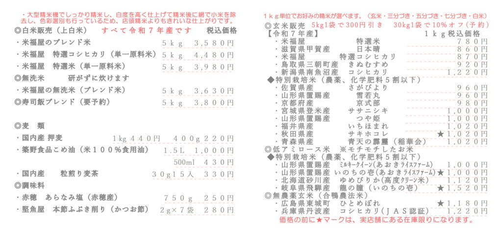 - 2020年10月16日 「米福屋 特選米」「米福屋 特選コシヒカリ」商品に追加しました。