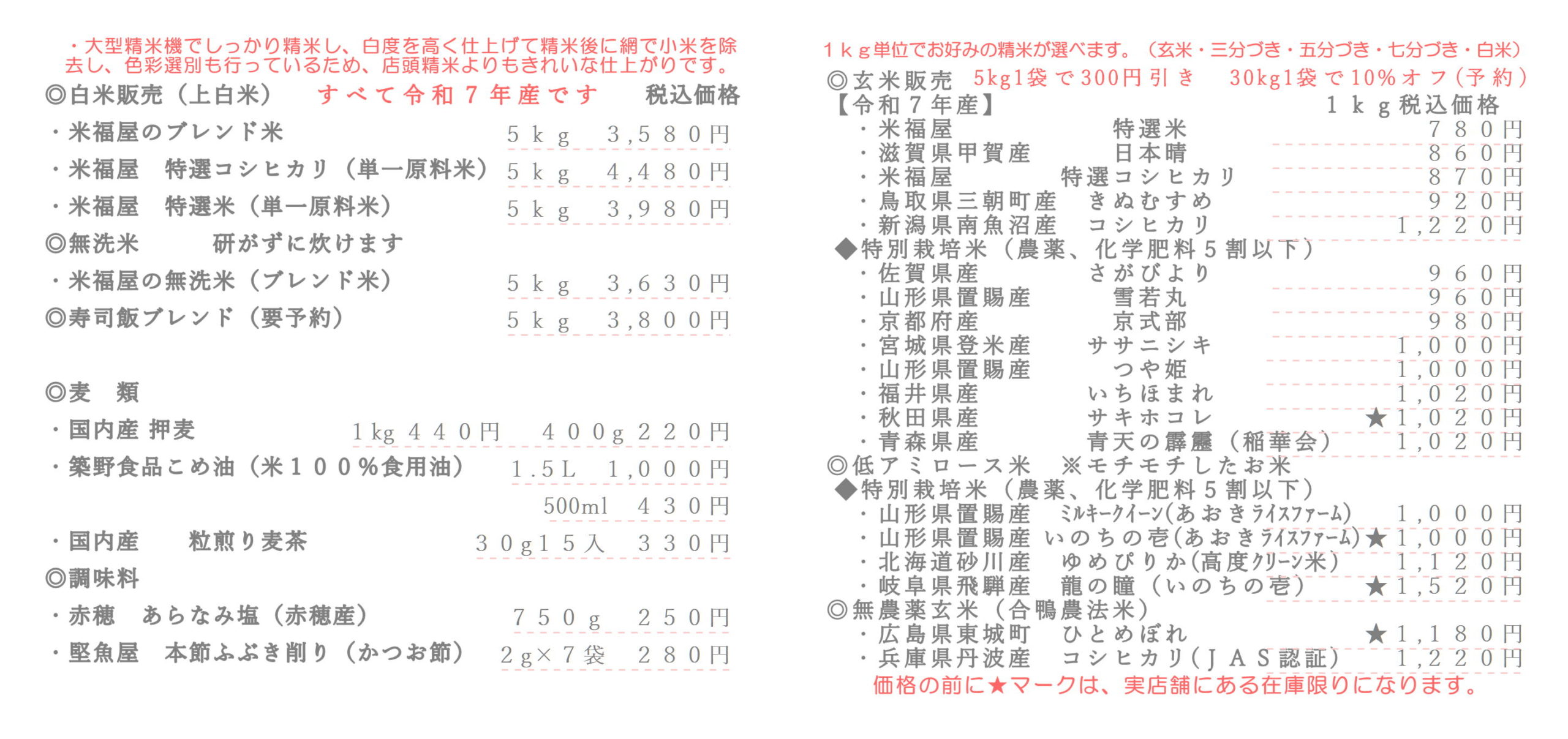 - 2025年06月10日 ★政府備蓄米の古古古米のお問い合わせいただきますが、当店は一切取り扱いません。また、輸入米も一切取り扱いません。